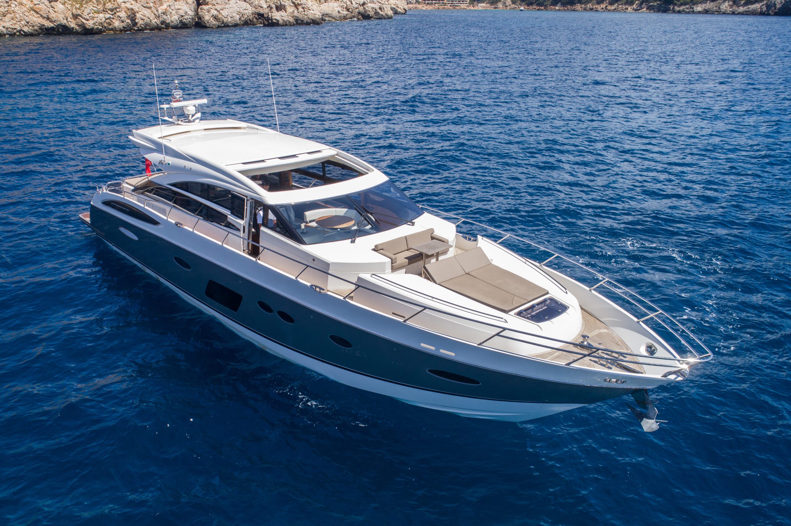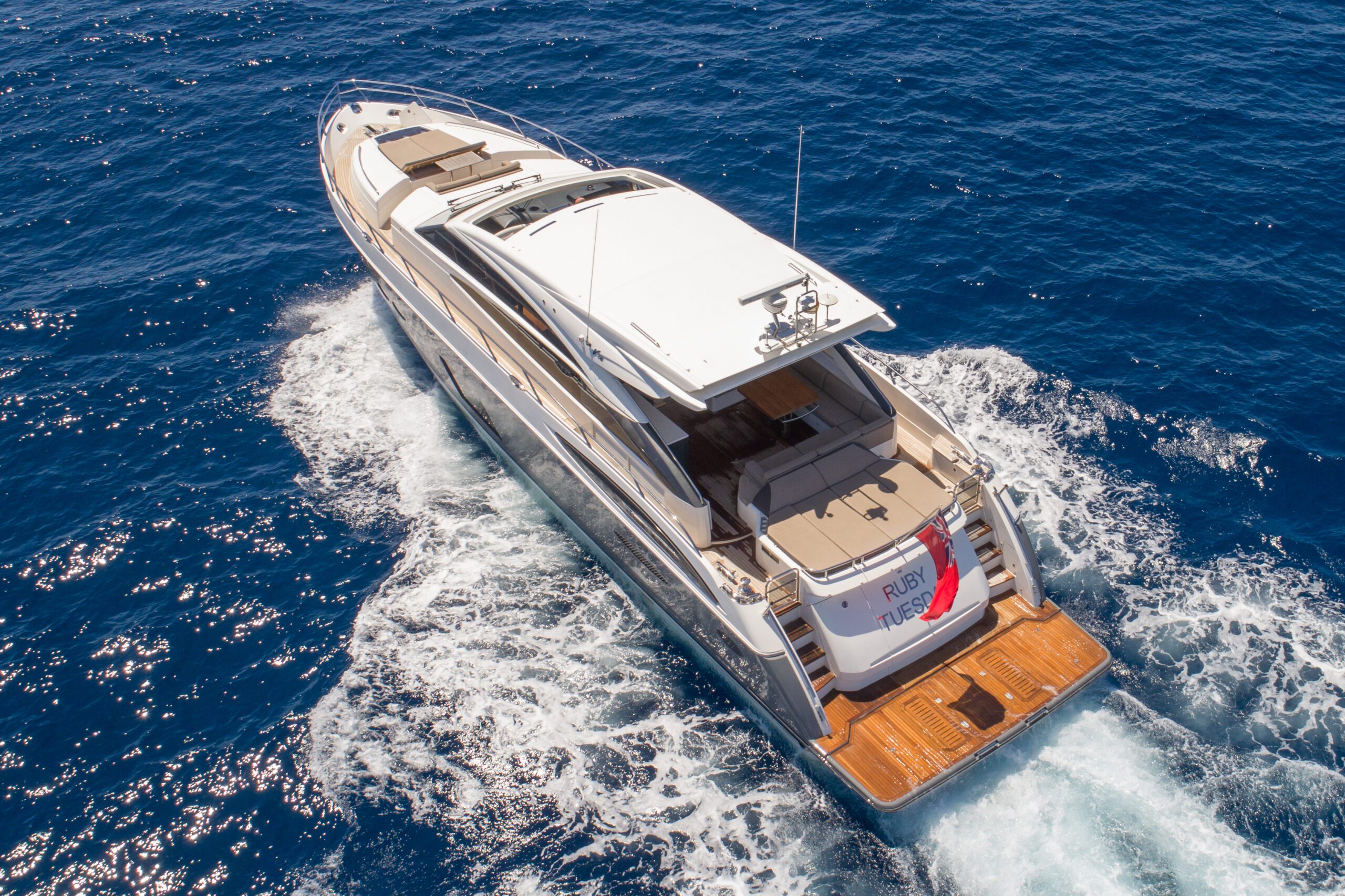 El M/Y RUBY TUESDAY, un sofisticado Princess V72, representa el epítome del lujo y la elegancia en el mar. Como un rubí bajo el sol, este majestuoso yate destaca por su presencia refinada, su cuidada estética y su carácter exclusivo, cautivando desde el primer instante.