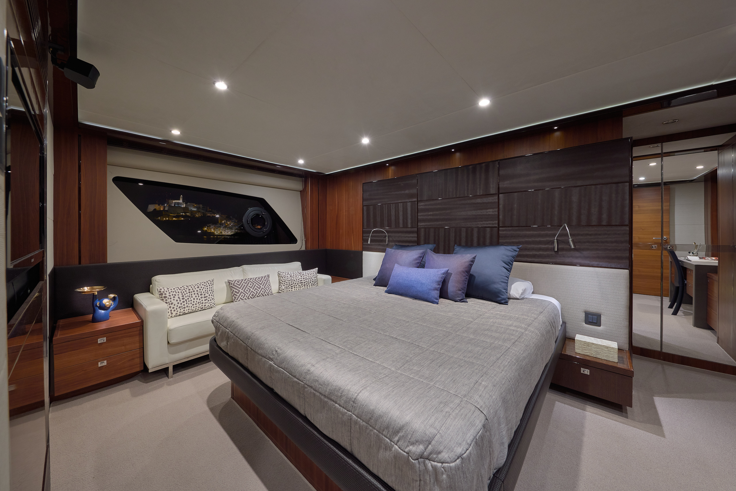 El camarote principal es un auténtico refugio privado, con una amplia cama, zona de estar y un espacioso baño en suite. Los camarotes adicionales mantienen el mismo nivel de calidad y atención al detalle, garantizando confort y privacidad para todos los invitados.