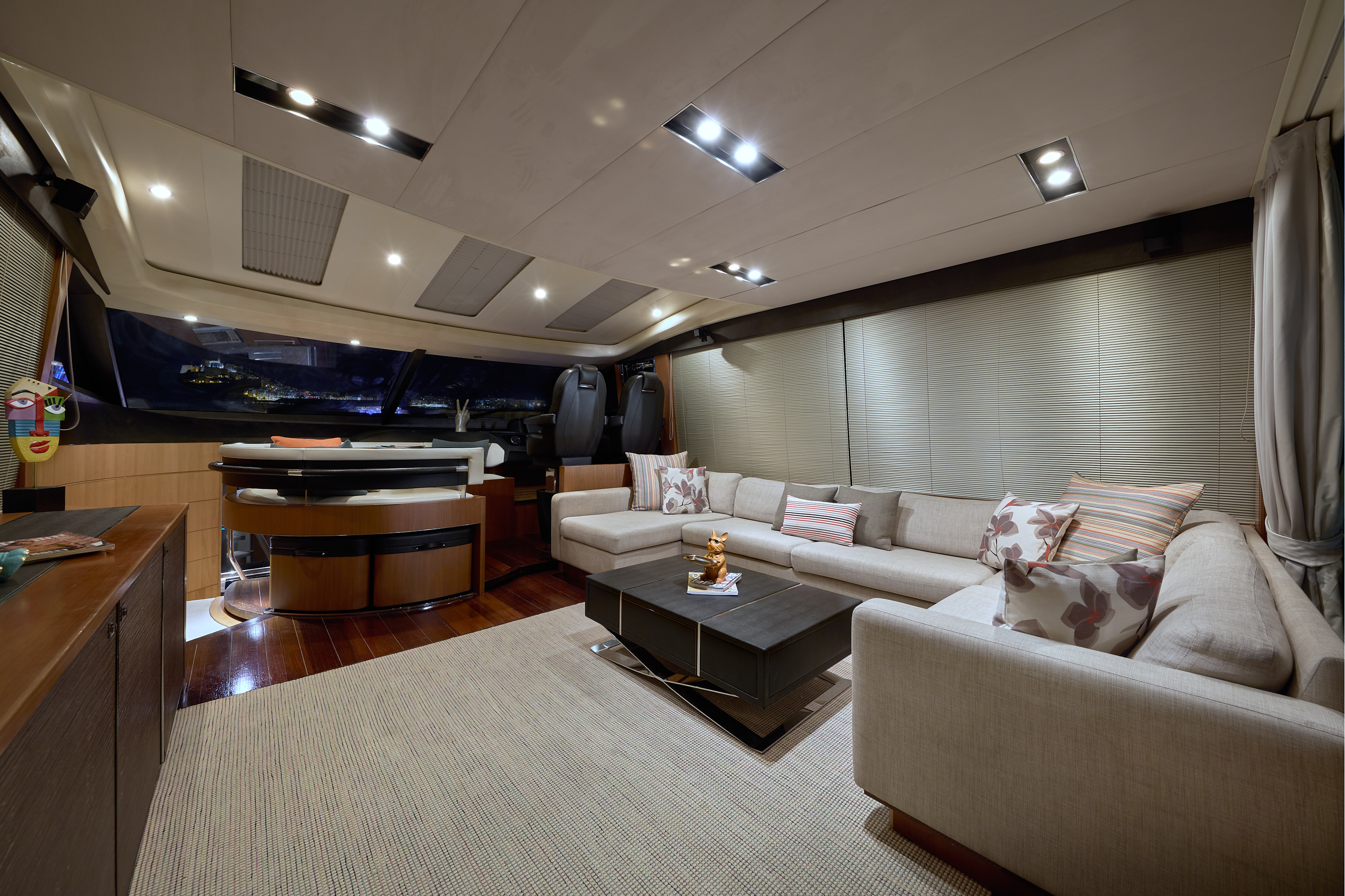 Cada espacio a bordo ha sido diseñado para el máximo confort y disfrute. Sus amplias zonas exteriores invitan a relajarse al sol, compartir momentos especiales o disfrutar de una comida al aire libre, mientras que sus interiores ofrecen una atmósfera cálida y sofisticada, con acabados en maderas nobles y lujosas tapicerías.